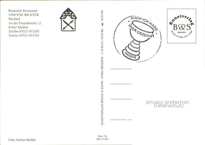 72540227 Meissen Elbe Sachsen Romantikrestaurant Vincenz Richter Terrasse postalisch nicht gelaufen Erhaltung siehe scans [AndreD76 kt119box] KatCode: 11110014280240