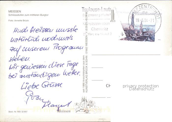 72563675 alte Postkarte Meissen Elbe Sachsen Schlossstufen zum mittleren Burgtor postalisch gelaufen Erhaltung siehe scans [LiesaD40] KatCode: 11110014280240