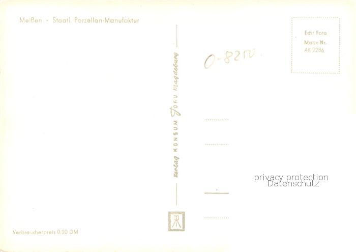 73750890 Meissen Elbe Sachsen Staatl Porzellan Manufaktur postalisch nicht gelaufen Erhaltung siehe scans [WerneD78] KatCode: 11110014280240