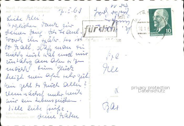 72072681 alte Postkarte Meissen Elbe Sachsen Staatliche Porzellan Manufaktur Boettger Denkmal postalisch gelaufen Erhaltung siehe scans KatCode: 11110014280240