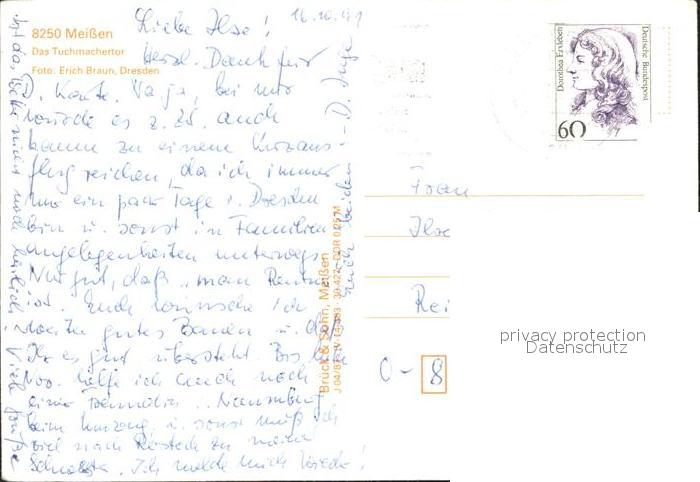 72329783 alte Postkarte Meissen Elbe Sachsen Tuchmachertor postalisch gelaufen Erhaltung siehe scans KatCode: 11110014280240