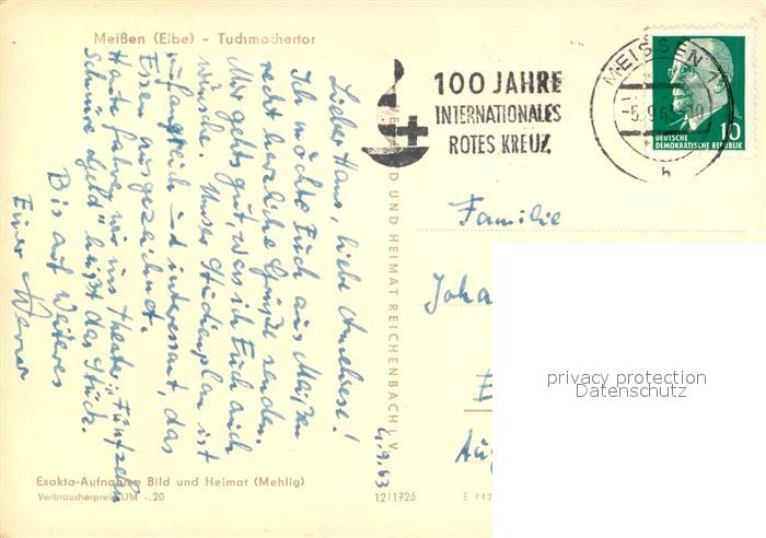 73139381 alte Postkarte Meissen Elbe Sachsen Tuchmachertor postalisch gelaufen Erhaltung siehe scans [NatalD47] KatCode: 11110014280240