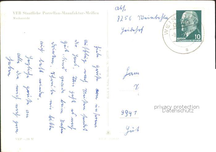 72062317 alte Postkarte Meissen Elbe Sachsen VEB Porzellan Manufaktur Werkansicht postalisch gelaufen Erhaltung siehe scans KatCode: 11110014280240