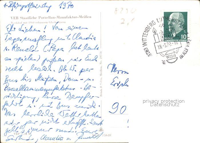 71913217 alte Postkarte Meissen Elbe Sachsen VEB Staatl Porzellan Manufaktur postalisch gelaufen Erhaltung siehe scans KatCode: 11110014280240