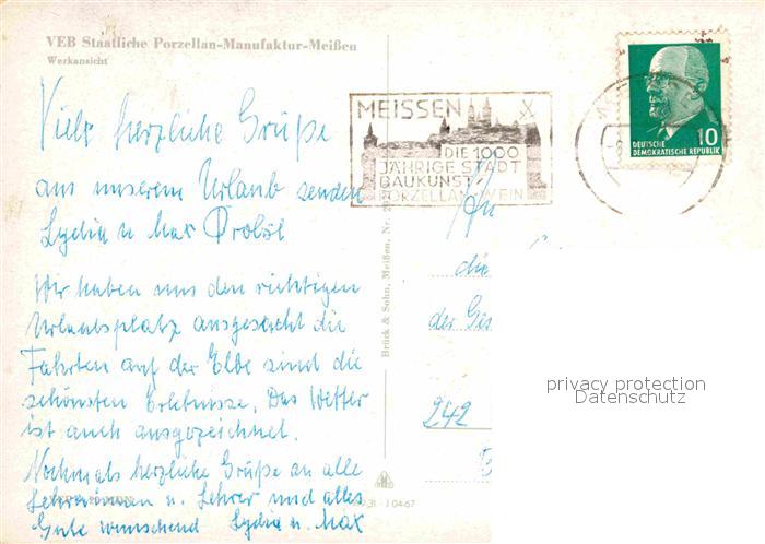 72849519 alte Postkarte Meissen Elbe Sachsen VEB Staatliche Porzellan Manufaktur postalisch gelaufen Erhaltung siehe scans [KathaD81] KatCode: 11110014280240