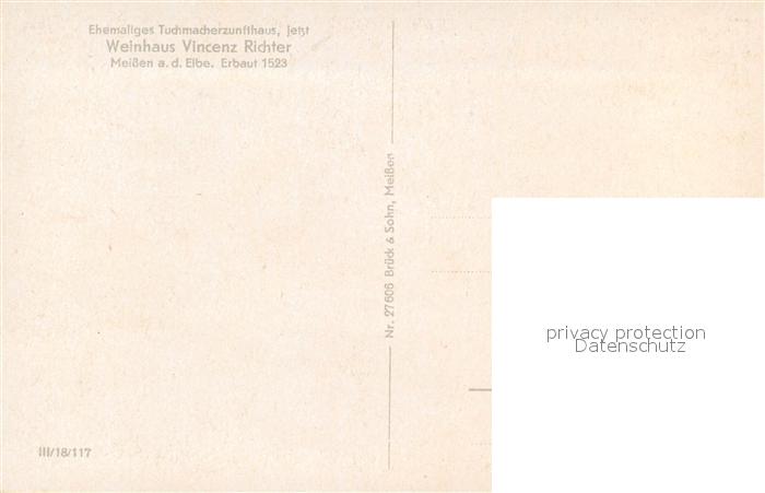 43496170 Meissen Elbe Sachsen Vincenz Richters Weinstuben Ehemaliges Tuchmacherzunfthaus Historisches Gebaeude postalisch nicht gelaufen Erhaltung siehe scans [FriedD77] KatCode: 11110014280240