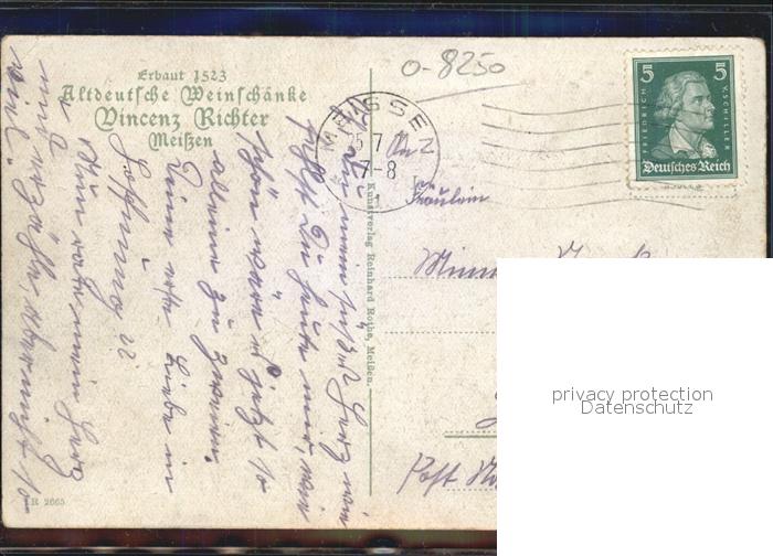 42386560 alte Postkarte Meissen Elbe Sachsen vor der Gruendung Original im Besitz von Vincenz Richter Altdeutsche Weinschaenke postalisch gelaufen Erhaltung siehe scans KatCode: 11110014280240