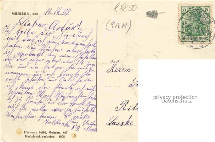 74117771 alte Postkarte MEIssEN Elbe Sachsen Waldschloesschen postalisch gelaufen Erhaltung siehe scans [FriedD77] KatCode: 11110014280240