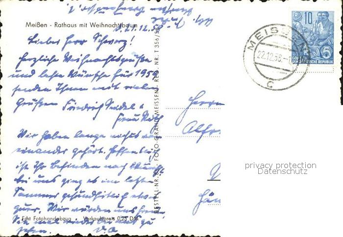 72402236 alte Postkarte Meissen Elbe Sachsen Weihnachtsbaum am Rathaus postalisch gelaufen Erhaltung siehe scans KatCode: 11110014280240