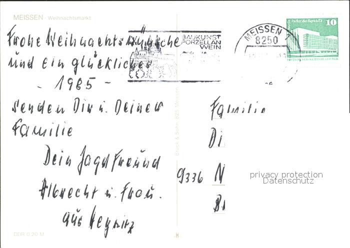 72376062 alte Postkarte Meissen Elbe Sachsen Weihnachtsmarkt Nachtaufnahme postalisch gelaufen Erhaltung siehe scans KatCode: 11110014280240