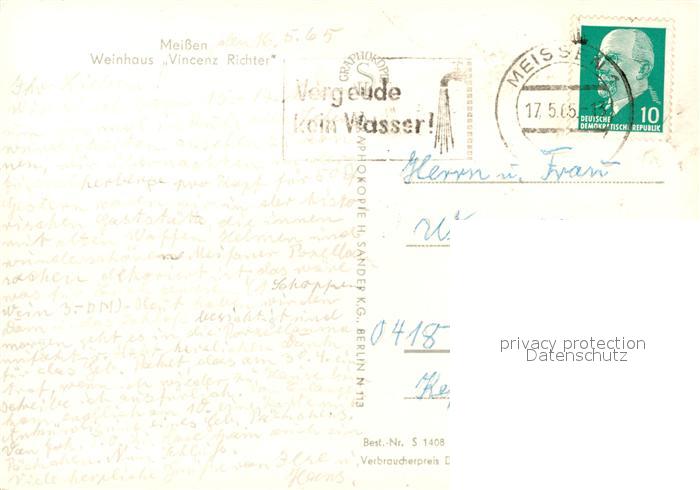 73248992 alte Postkarte Meissen Elbe Sachsen Weinhaus Vincenz Richter postalisch gelaufen Erhaltung siehe scans [FriedD77] KatCode: 11110014280240
