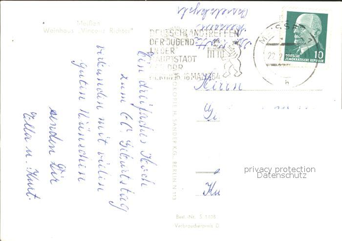72368364 alte Postkarte Meissen Elbe Sachsen Weinhaus Vincenz Richter postalisch gelaufen Erhaltung siehe scans KatCode: 11110014280240