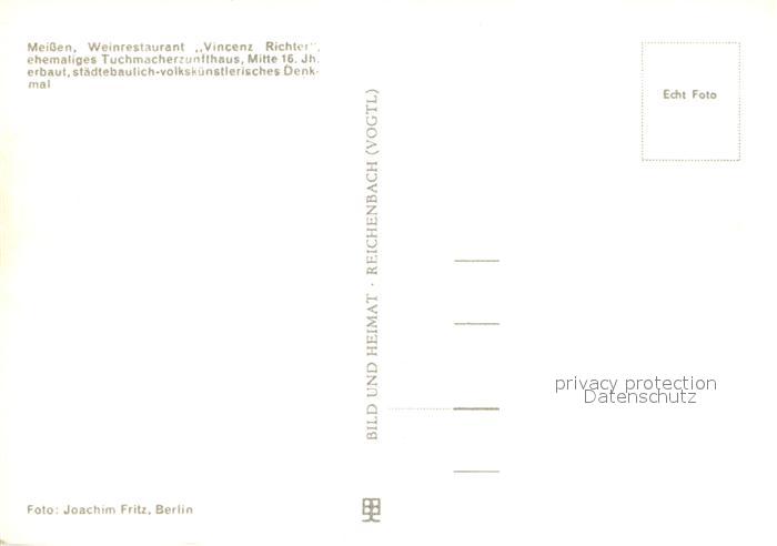 72985703 Meissen Elbe Sachsen Weinrestaurant Vincenz Richter postalisch nicht gelaufen Erhaltung siehe scans [WerneD78] KatCode: 11110014280240