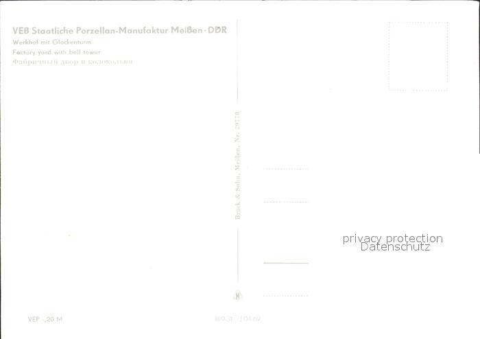 72247222 Meissen Elbe Sachsen Werkhof mit Glockenturm Porzellan Manufaktur postalisch nicht gelaufen Erhaltung siehe scans KatCode: 11110014280240