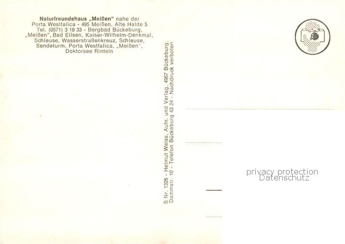 73846079 Meissen Minden Westfalen Weser Bergbad Bueckeburg Meissen Bad Eilsen Kaiser Wilh Denkmal Schleuse Wasserstrassenkreuz Schleuse Sendeturm Porta Westfalica Doktorsee Rinteln postalisch nicht gelaufen Erhaltung siehe scans [WerneD78] Wern Katcode 11110005770024