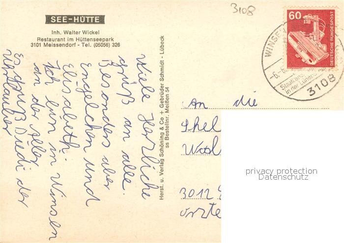73642251 alte Postkarte Meissendorf See Huette Restaurant im Huettenseepark Strandpartien postalisch gelaufen Erhaltung siehe scans [WerneD78] KatCode: 11110003351024