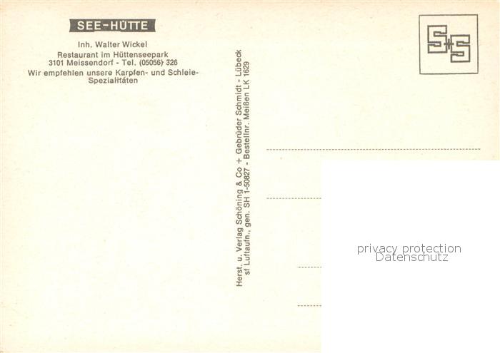 73757602 Meissendorf See-Huette Restaurant im Huettenseepark postalisch nicht gelaufen Erhaltung siehe scans [FriedD77] KatCode: 11110003351024