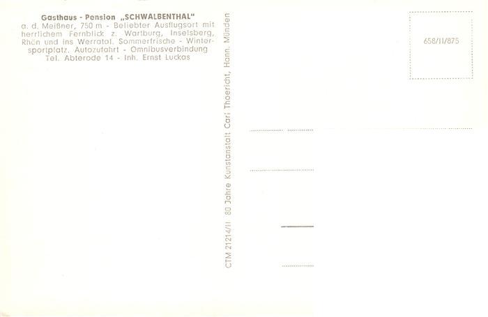 73914710 Meissner Blick vom Pensionshaus Schwalbenthal Sender Gasthaus Schwalbenthal postalisch nicht gelaufen Erhaltung siehe scans [FriedD77] KatCode: 11110006636008