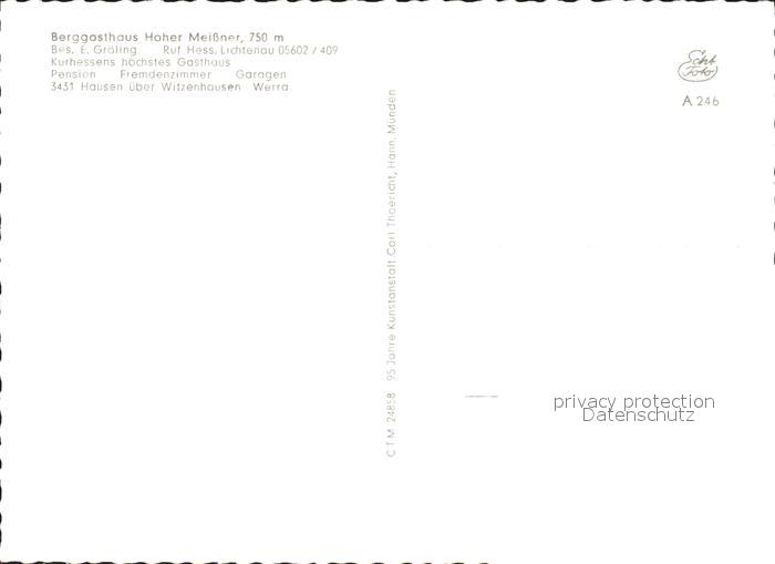 72097808 Meissner Landkarte Berggasthaus Hoher Meissner postalisch nicht gelaufen KatCode: 11110006636008