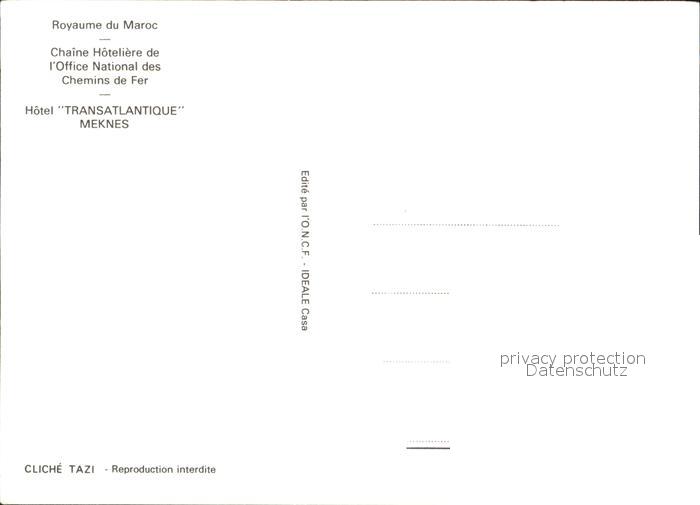 Meknes Chaine Hoteliere de Office National de Chemins de fer Hotel-Transatlantique postalisch nicht gelaufen Erhaltung siehe scans