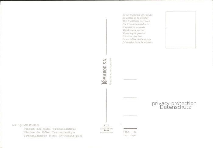 Meknes Piscina Hoetl Transatlantique postalisch nicht gelaufen Erhaltung siehe scans