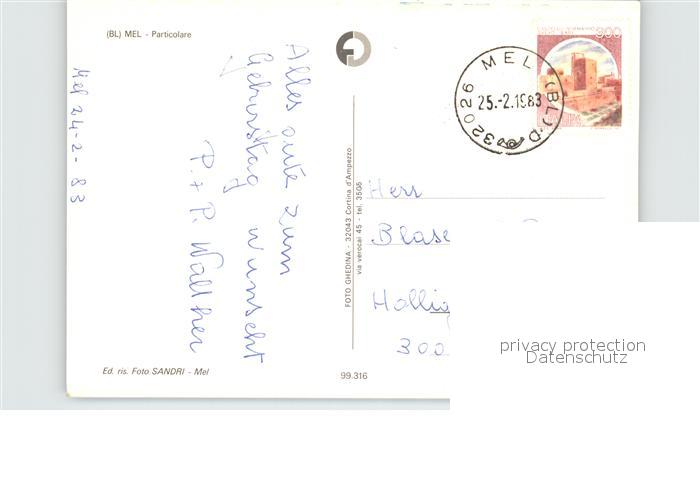 old postcard Mel Belluno Strassenpartie postalisch gelaufen Erhaltung siehe scans [FriedD77]