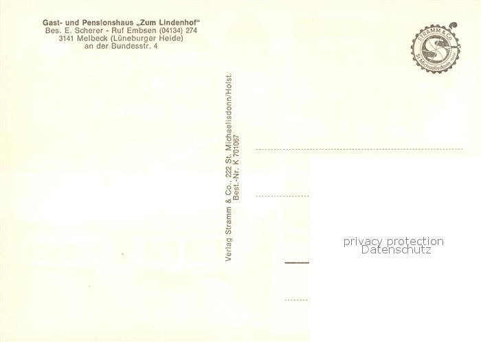 73542988 Melbeck Gasthaus Pension Zum Lindenhof Lueneburger Heide postalisch nicht gelaufen Erhaltung siehe scans [FriedD77] KatCode: 11110003355024