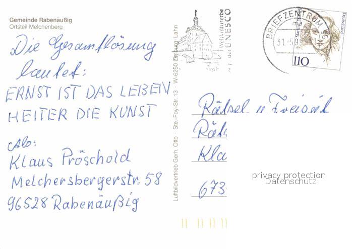 72725388 alte Postkarte Melchenberg Rabenaeussig Fliegeraufnahme postalisch gelaufen Erhaltung siehe scans [FriedD77] KatCode: 11110016072002