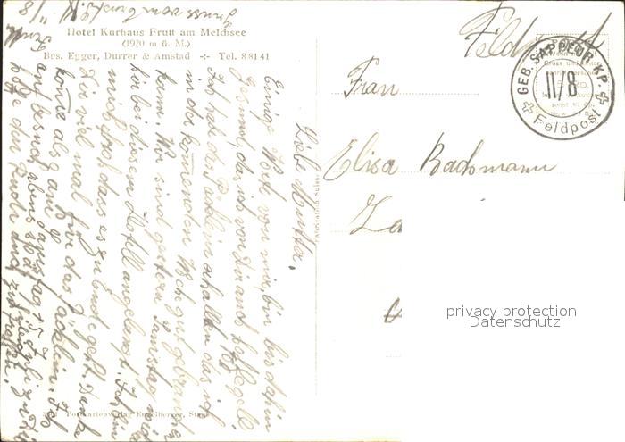 11646973 alte Postkarte Melchsee-Frutt Hotel Kurhaus Frutt postalisch gelaufen Feldpost Erhaltung siehe scans KatCode: 11470150440306