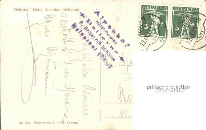 11739273 alte Postkarte Melchtal Hotel Alpenhof Bellevue postalisch gelaufen Erhaltung siehe scans KatCode: 11470150440304