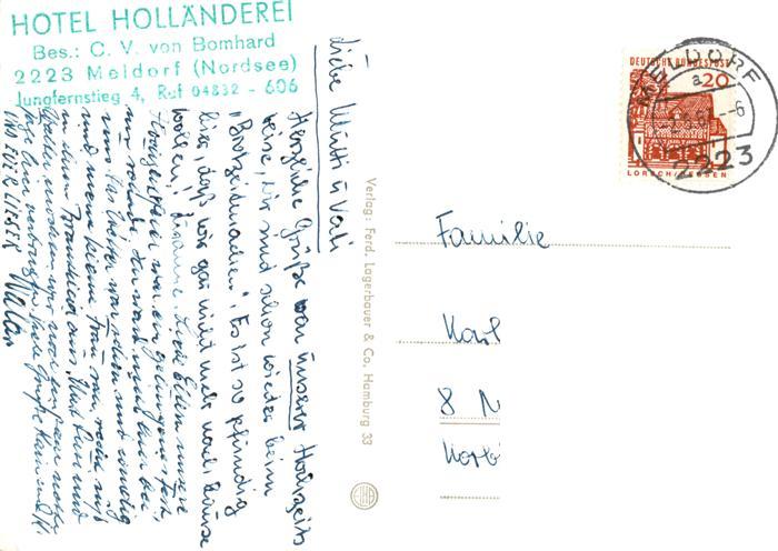 73878196 alte Postkarte Meldorf Hotel Hollaenderei postalisch gelaufen Erhaltung siehe scans [FriedD77] KatCode: 11110001051074