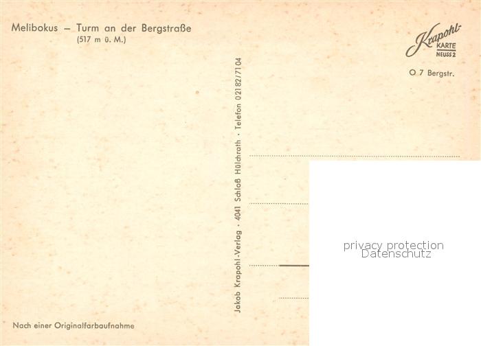 73099395 Melibokus Turm an der Bergstrasse postalisch nicht gelaufen Erhaltung siehe scans [WerneD78] KatCode: 11110006431022