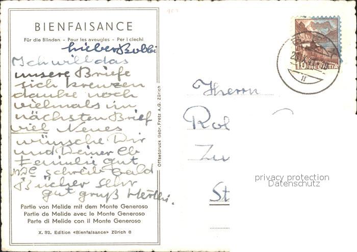 11656484 alte Postkarte Melide mit Monte Generoso Kuenstlerkarte postalisch gelaufen Erhaltung siehe scans KatCode: 11470210660170