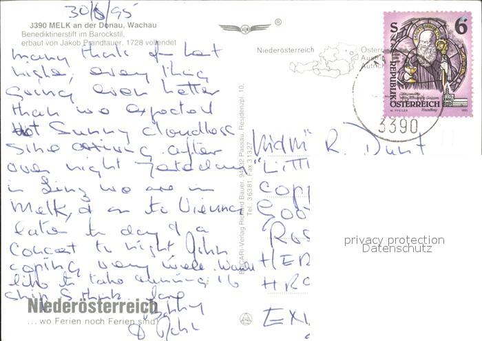 71860319 alte Postkarte Melk Donau Benediktinerstift postalisch gelaufen Erhaltung siehe scans KatCode: 11390121031524