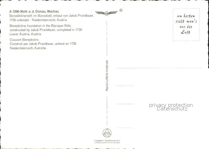 71872122 Melk Donau Benediktinerstift Fliegeraufnahme postalisch nicht gelaufen Erhaltung siehe scans KatCode: 11390121031524