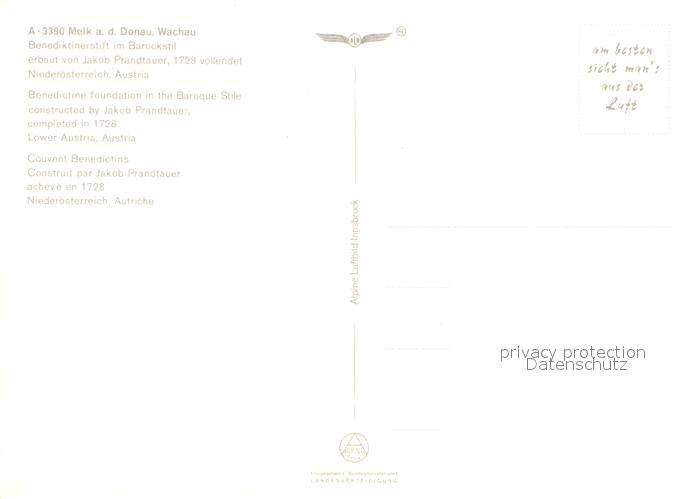 73007653 Melk Donau Benediktinerstift Fliegeraufnahme postalisch nicht gelaufen Erhaltung siehe scans [WerneD78] KatCode: 11390121031524
