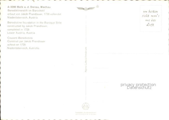 72490523 Melk Donau Benediktinerstift Fliegeraufnahme postalisch nicht gelaufen Erhaltung siehe scans KatCode: 11390121031524