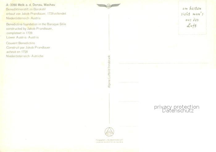 73167772 Melk Donau Fliegeraufnahme Benediktinerstift Donaupartie postalisch nicht gelaufen Erhaltung siehe scans [LiesaD40] KatCode: 11390121031524