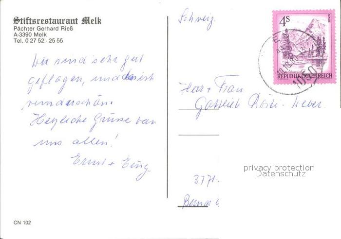 72219627 alte Postkarte Melk Donau Stiftsrestaurant postalisch gelaufen Erhaltung siehe scans KatCode: 11390121031524