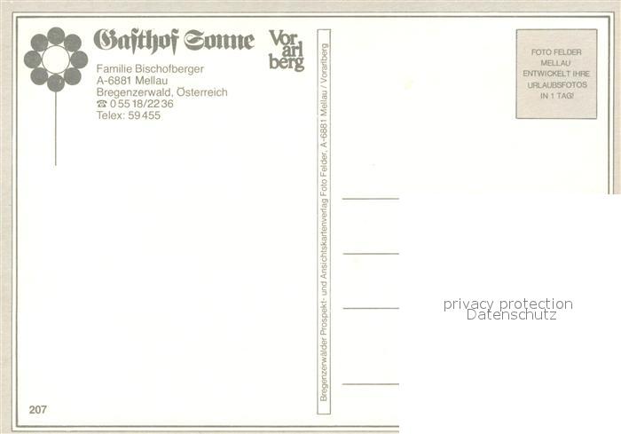 73247041 Mellau Vorarlberg Gasthof Sonne postalisch nicht gelaufen Erhaltung siehe scans [KathaD81] KatCode: 11390341080227