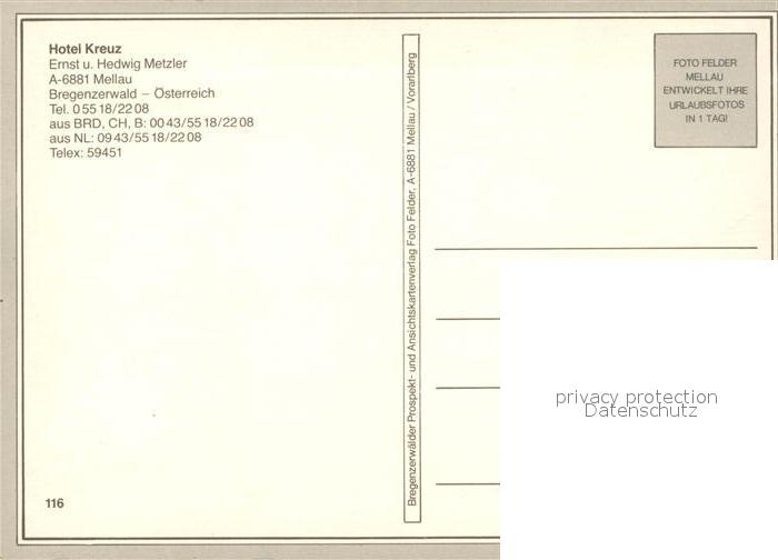 73243799 Mellau Vorarlberg Hotel Kreuz Restaurant Hallenbad Bregenzerwald postalisch nicht gelaufen Erhaltung siehe scans [FriedD77] KatCode: 11390341080227