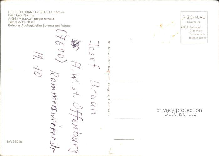 72006692 Mellau Vorarlberg SB Restaurant Rosstelle postalisch nicht gelaufen KatCode: 11390341080227