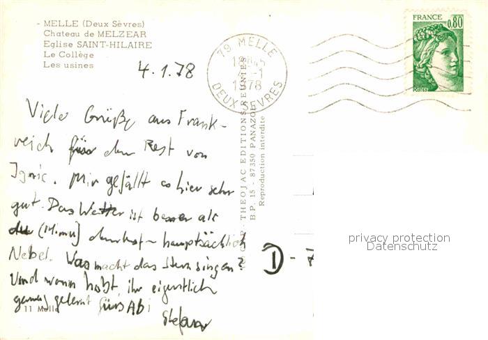 12709499 carte postale Melle Niort Chateau de Melzear Eglise Saint Hilaire College Usines postalisch gelaufen Erhaltung siehe scans [FriedD77] KatCode: 11170079279174