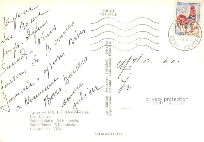 13581245 carte postale Melle Niort Usines Eglise Saint Hilaire Eglise Saint Pierre Hôtel de Ville postalisch gelaufen Erhaltung siehe scans [FriedD77] KatCode: 11170079279174