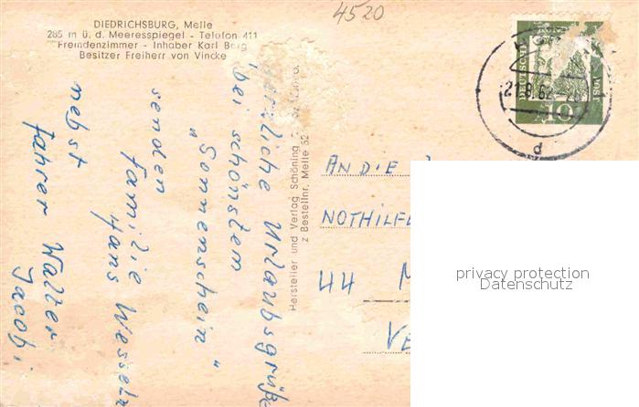 72868628 alte Postkarte Melle Osnabrueck Diedrichsburg postalisch gelaufen Erhaltung siehe scans [LiesaD40] KatCode: 11110003459024