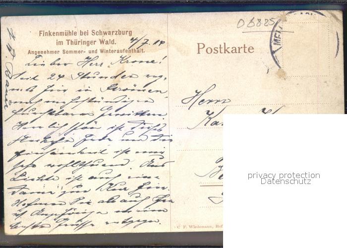 42441527 alte Postkarte Mellenbach-Glasbach Finkenmuehle postalisch gelaufen Erhaltung siehe scans KatCode: 11110016073054