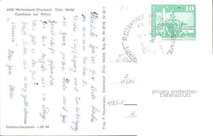 72091389 alte Postkarte Mellenbach-Glasbach Gasthaus zur Kehre postalisch gelaufen Erhaltung siehe scans KatCode: 11110016073054
