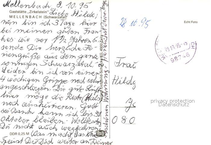73334468 alte Postkarte Mellenbach-Glasbach Gaststaette Zirkelstein postalisch gelaufen Erhaltung siehe scans [WerneD78] KatCode: 11110016073054