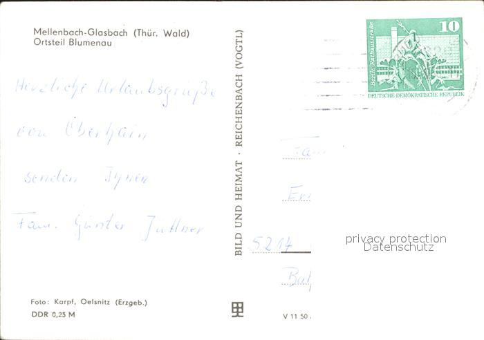 72043098 alte Postkarte Mellenbach-Glasbach OT Blumenau Strassenpartie postalisch gelaufen Erhaltung siehe scans KatCode: 11110016073054