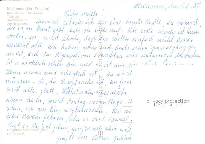 72423622 alte Postkarte Mellensee Badestelle Teilansicht Nottekanal postalisch gelaufen Erhaltung siehe scans KatCode: 11110012072002